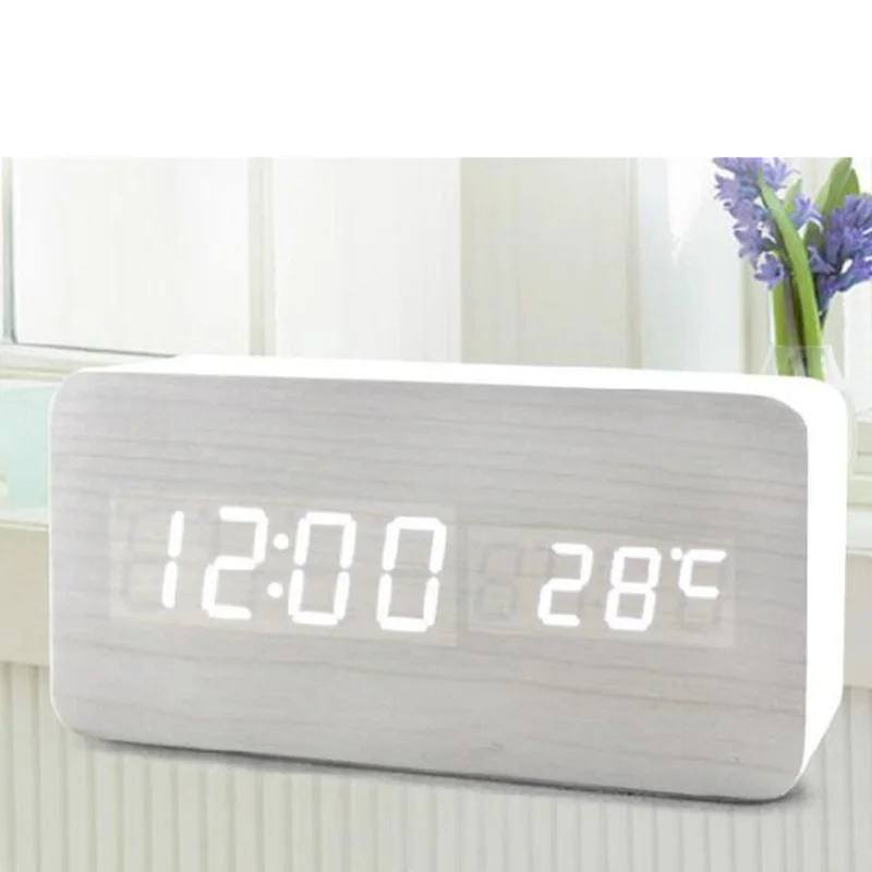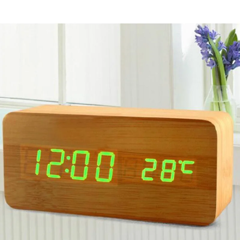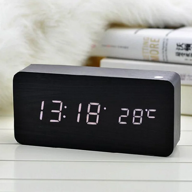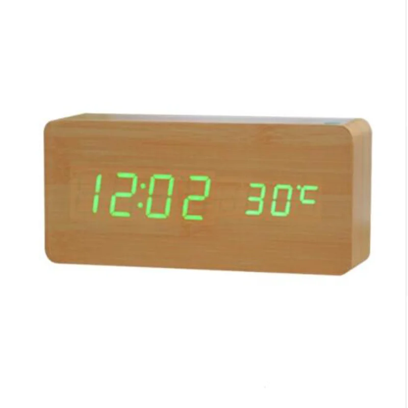 Special Offer Cyfrowy budzik led Despertador kontrola dźwięku wyświetlacz temperatury USB AAA elektroniczny drewniany zegar biurkowy 4 kolory Discount 33% Today!